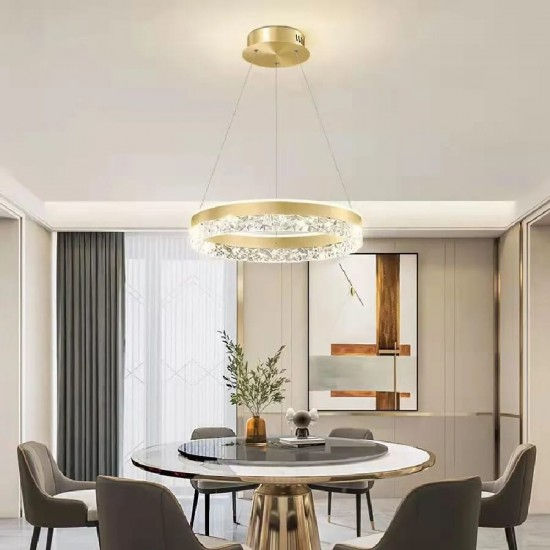 The hanging design of the LED chandelier gives it a modern and elegant look. The circular shape and white finish add a contemporary and sophisticated style to the room. This chandelier can be placed in living rooms, hallways, bedrooms or other interior spaces where you want to add a touch of elegance and sparkle.